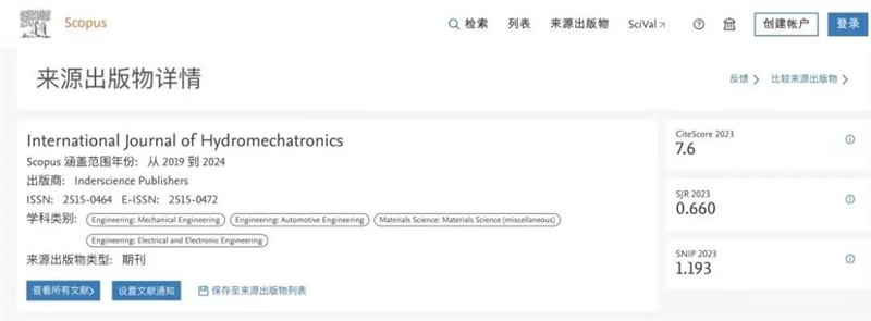 IJHM 2023年CiteScore为7.6,同比增长27%。在所属四个学科领域Mechanical Engineering、Automotive Engineering、Materials Science (miscellaneous)、Electrical和Electronic Engineering均位于Q1区。