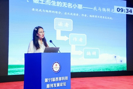 《内蒙古民族大学学报》(自然科学版蒙古文)编辑室主任、副编审陈晓慧带来了题为“我是草原上的一颗小草”的报告,她根据自己的编辑成长经历,从多个维度剖析了“读者-作者-编辑”的职业发展轨迹,分享了如何不断提升个人能力来应对行业变化及工作需求的宝贵经验。