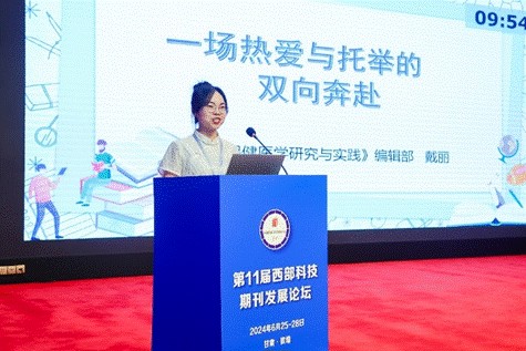 《保健医学研究与实践》编辑部编辑、主编助理戴丽作了题为“一场热爱与托举的双向奔赴”的报告,讲述自己在主编、主任的鼓励与支持下点燃了浓烈的编辑职业热情,并获得了众多荣誉和成果的暖心故事。