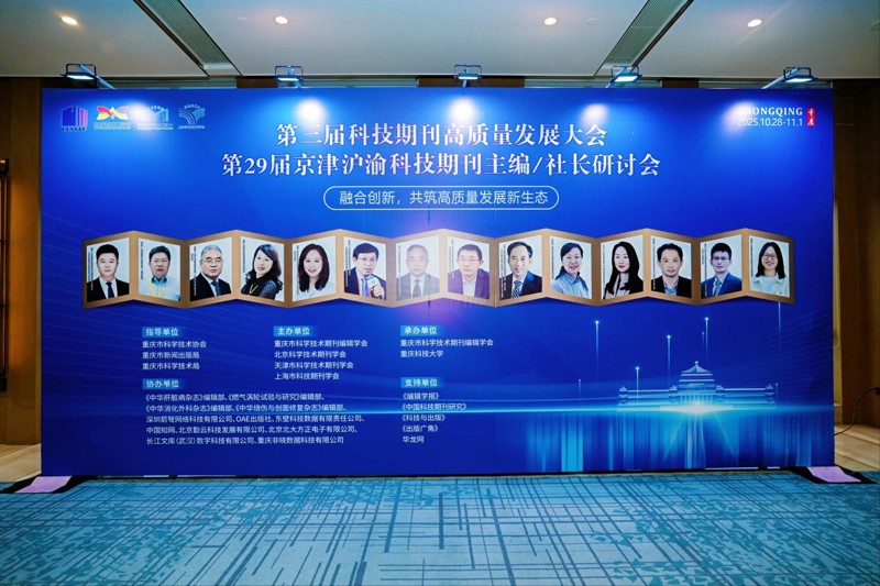 2025年10月29日上午,“第三届科技期刊高质量发展大会暨第29届京津沪渝科技期刊主编/社长研讨会”在重庆富力假日酒店盛大开幕,本次大会以“融合创新,共筑高质量发展新生态”为主题,通过线下+线上的方式,吸引了来自全国各地共500余名期刊同仁参会。